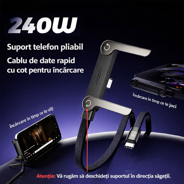 Cablul nostru se remarcă prin încărcare ultra-rapidă, suport integrat și compatibilitate universală, oferindu-ți confort și eficiență pe care alții nu le pot egala.